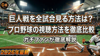 巨人戦視聴方法 【2026年最新】巨人戦を全試合見る方法は?プロ野球の視聴方法をガチファンが徹底比較! プロ野球の視聴方法を2026年最新版で徹底比較!巨人戦を全試合見るならどこが最強?熱狂的巨人ファンである筆者がスカパー、DAZN、Hulu、GIANTS TVの料金やメリットをガチ解説。「中日・広島戦が見れない」罠の回避法など、損しない選び方を伝授します。 2026.03.26 巨人戦視聴方法