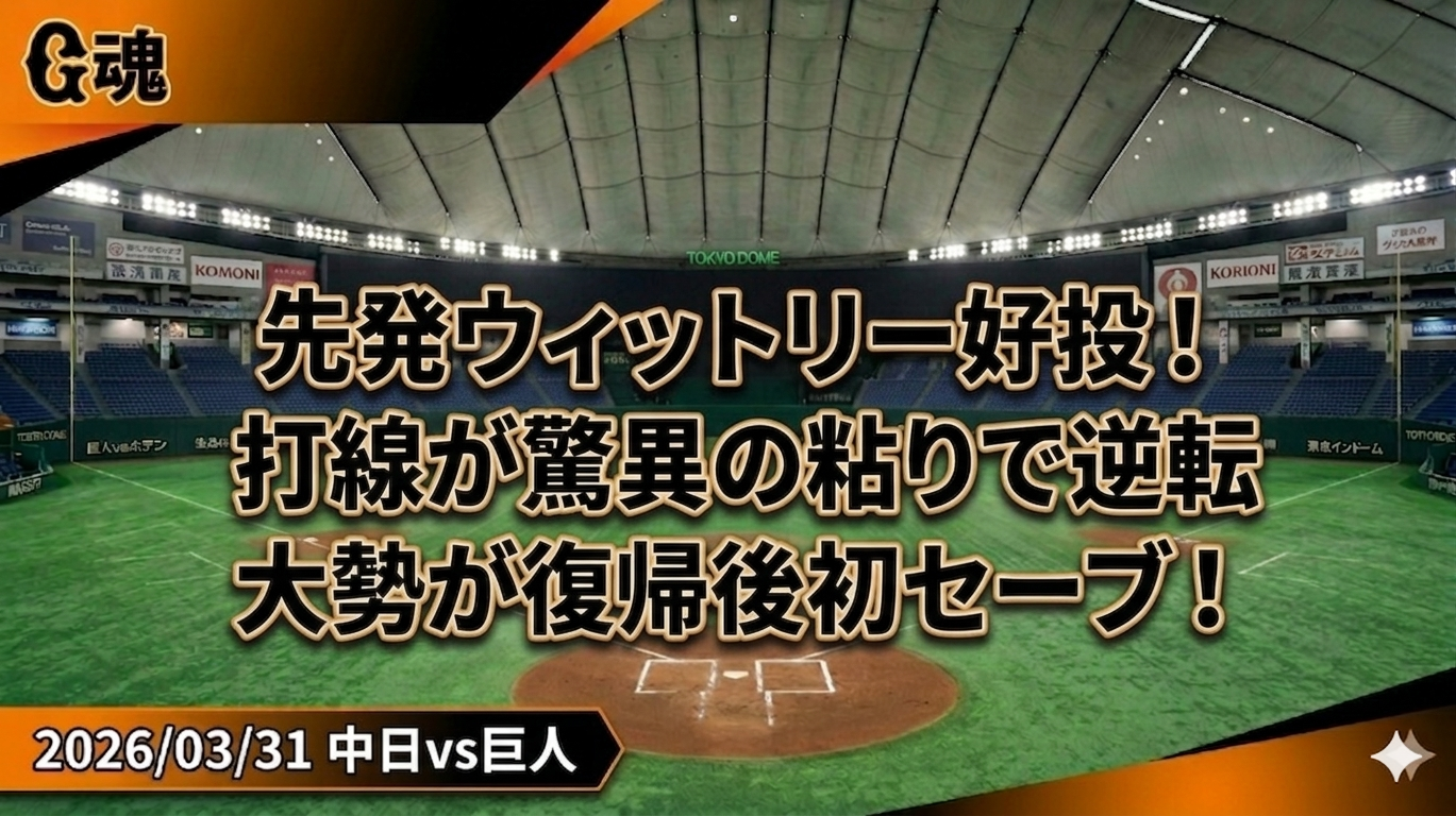 2026/03/31【中日vs巨人】 試合結果・スコア速報!感想と勝敗のポイントをファン目線で解説!