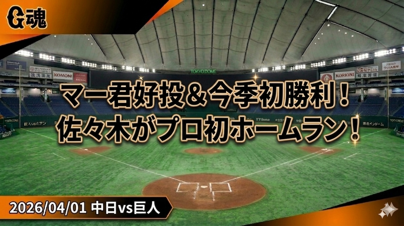 2026/4/1【中日vs巨人】 試合結果・スコア速報!感想と勝敗のポイントをファン目線で解説!